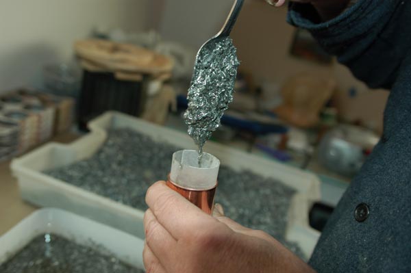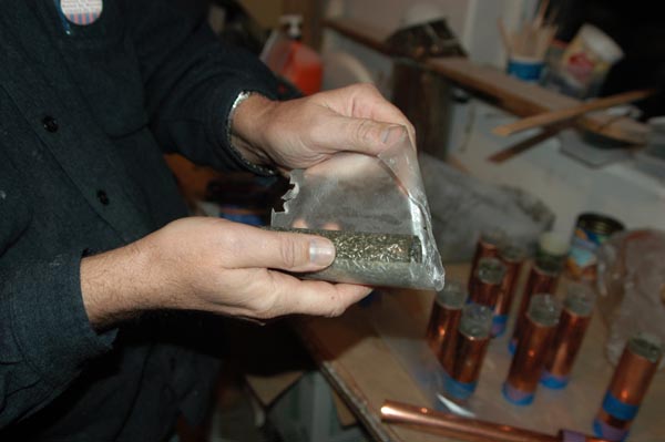 matrix before placing the crystal inside. If pouring directly into the pipe then fill the bottom with about 3 inches of metal and resin then add your crystal.