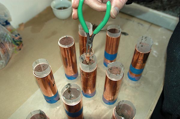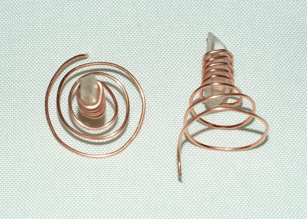crystal, 20 to 16 gauge un-insolated copper wire, metal shavings, resin, wax