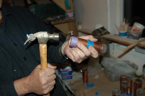 large steal plumbing cap or 2x4 to absorb the pounding. Dents on the back end of the pipe from pounding do not seem to effect the performance of the device. One advantage to